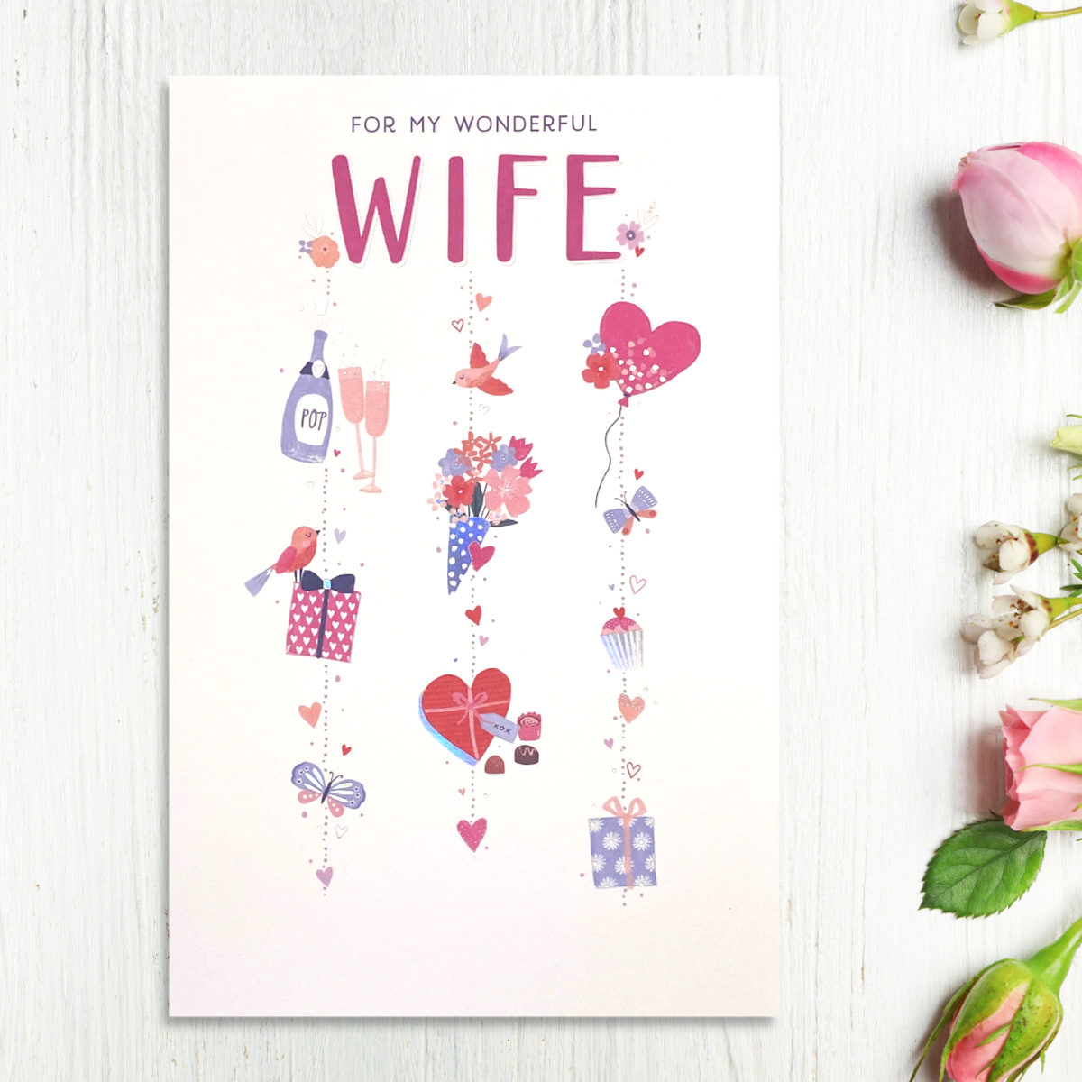 Fabulous Wife Birthday design from the Simply Precious collection with silver foil details and colour printed insert.