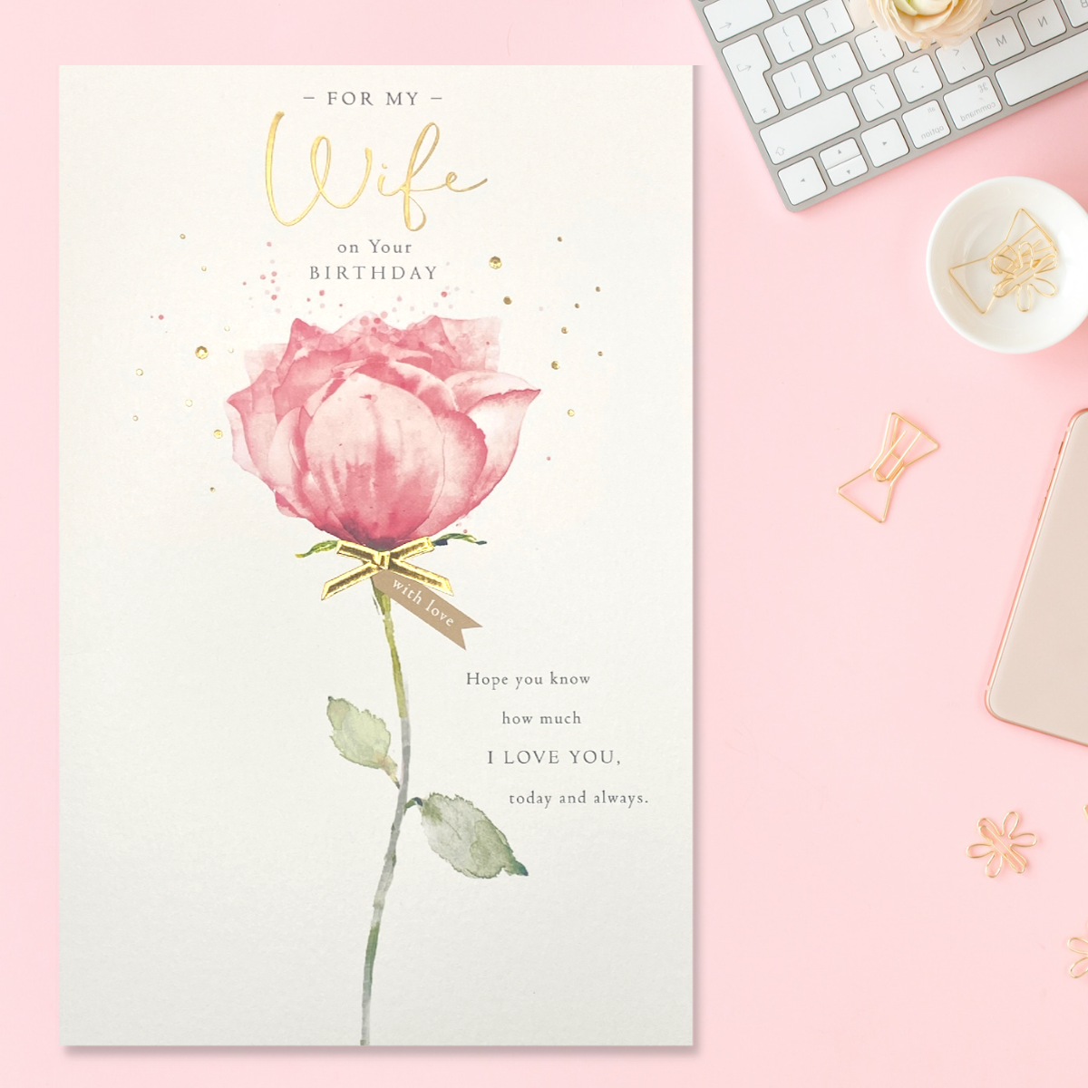 Fabulous Wife Birthday large design with gold foil details and the prettiest colour printed insert.