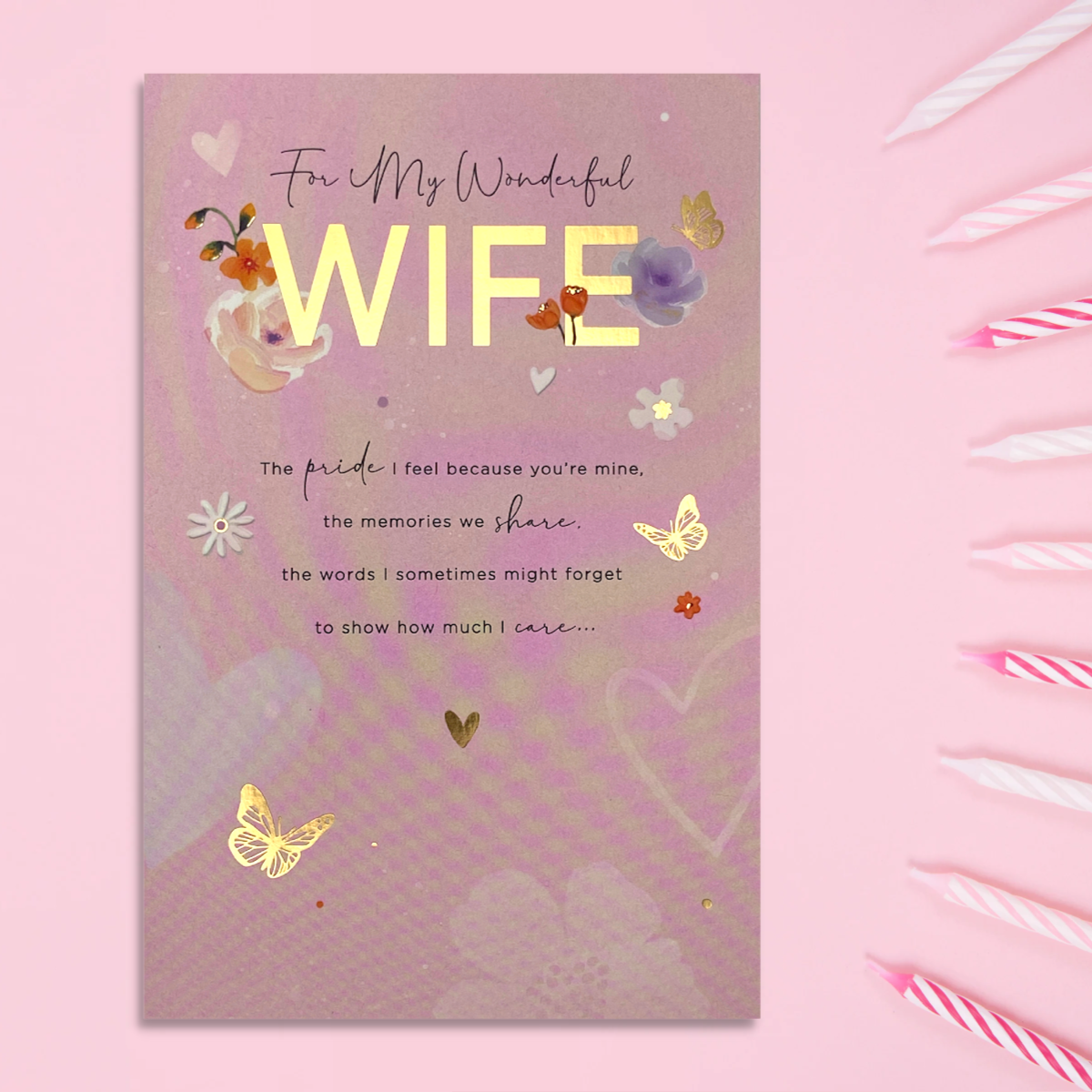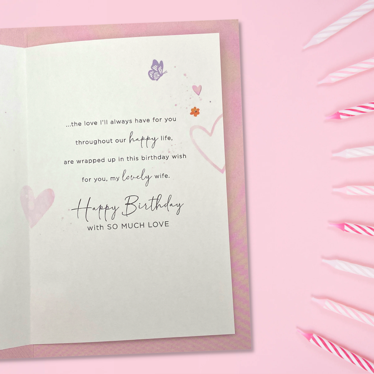 Gorgeous textured Wife Birthday design from the Thinking Of You collection with gold foil details and colour printed insert.