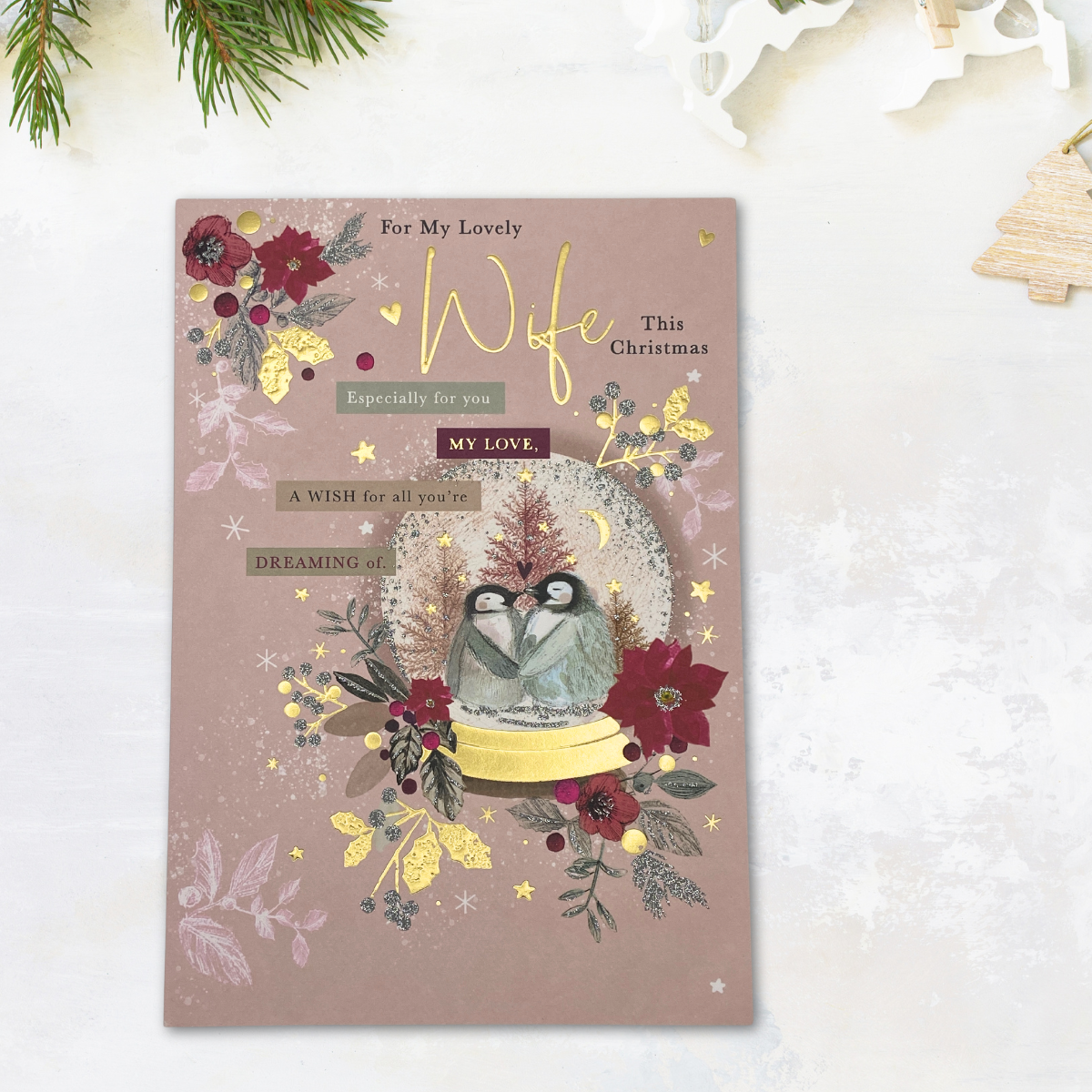 Wife Christmas Card - Festive Memories Penguin Snowglobe