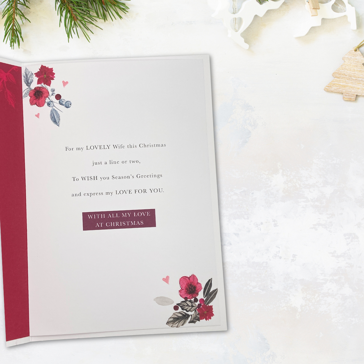 A fantastic festive Wife Christmas card with gold foil details, added sparkle and colour printed insert.