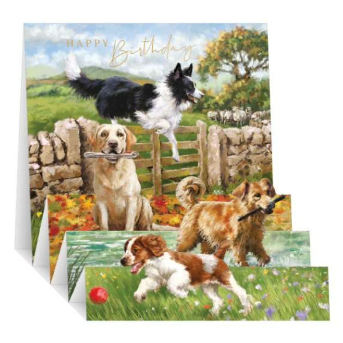 Zig Zag Pop Up Birthday Card - Dogs Playing